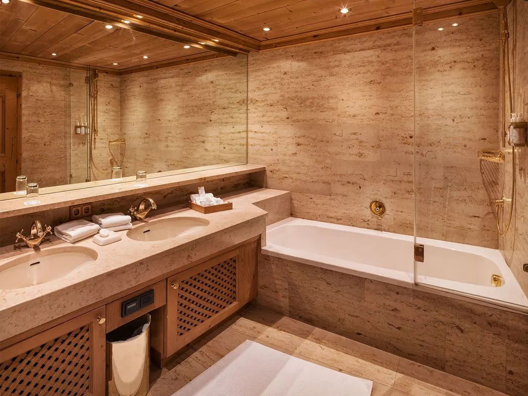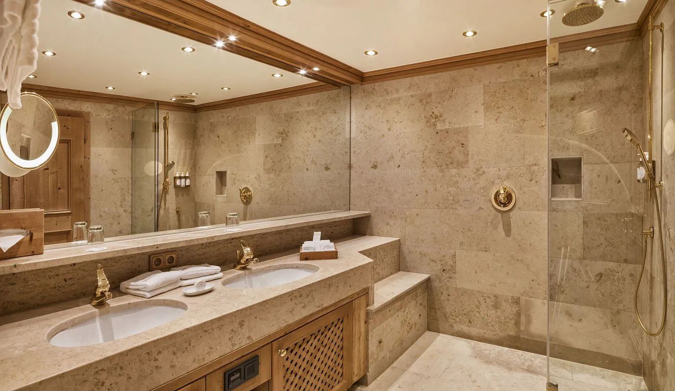 Gemütlicher Wohn-Schlafraum mit hochwertigen Zirbenholz-Möbeln und -Vertäfelung, großteils mit zentral beheiztem Kachelofen, begehbarer Kleiderschrank, Badezimmer mit Doppelwaschbecken, Badewanne oder großzügiger Regendusche, WC, Sitzecke mit Esstisch, Liegelounge zum Entspannen, Telefon, WLAN, Minibar, Safe, Flatscreen-TV, Nespresso-Maschine mit nachhaltigen Kapseln (aus Platzgründen im Biohotel Studio nur auf Anfrage verfügbar), Balkon oder Terrasse – mit Blick zum Wilden Kaiser oder auf unser Lipizzaner-Gestüt