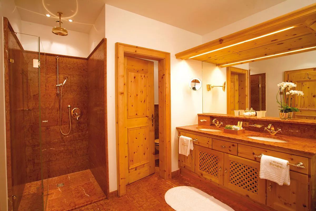 Großer Wohn-Schlafraum mit hochwertigen Zirbenholz-Möbeln, Badezimmer mit Badewanne und/oder Dusche, getrenntes WC, gemütlicher Sitzbereich, Telefon, WLAN, Minibar, Safe, Flatscreen-TV, Nespresso-Maschine mit nachhaltigen Kapseln, Balkon oder Terrasse teilweise mit Blick zum Wilden Kaiser