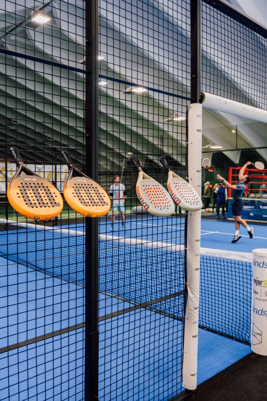 Weitere Ausrüstung: Wichtig ist geeignetes Schuhwerk – entweder spezielle Padelschuhe oder Sandplatz- bzw. All-Court-Tennisschuhe. Die passende sportliche Bekleidung können Sie auch in unserem Sport-Eck erwerben.