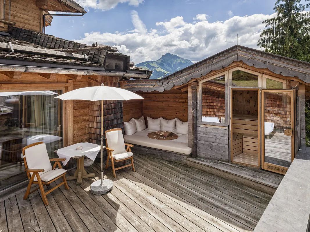 Wohnzimmer mit gemütlicher Lounge-Ecke und offenem Kamin, 2-3 Schlafzimmer mit je einem Zirben-Doppelbett, 2 Badezimmer mit Doppelwaschbecken, Badewanne und Dusche, zusätzliche Dusche und Waschbecken in einem Schlafzimmer, getrenntes WC, Telefon, WLAN, Minibar, Safe, pro Zimmer ein Flatscreen-TV, Nespresso-Maschine mit nachhaltigen Kapseln, Klimatisierung, private Dachterrasse mit Saunahütte und Lounge-Bereich